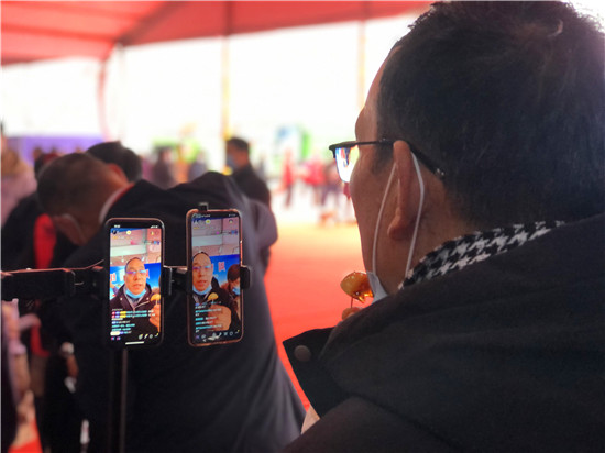 28日早上7時許,周口網(wǎng)紅俱樂部的網(wǎng)紅們和工作人員就開始為今天的直播做準備,早早把直播設備搬到現(xiàn)場,進行調試。10時左右,周商產(chǎn)品展示展覽活動現(xiàn)場人頭攢動,熱鬧非凡,來自周口本地的9位網(wǎng)紅們陸續(xù)架好手機直播設備,打開補光燈,開始直播。現(xiàn)場的9位網(wǎng)紅各有特色,有打扮時髦的美女主播,有歌聲出眾的中年大叔,年齡最大的網(wǎng)紅是今年65歲的鹿邑大爺。網(wǎng)紅們一手拿著周口的蜂蜜、空心掛面、麻花、粉條、醬豆等土特產(chǎn),一邊對著手機屏幕里的粉絲熱情地展示和介紹起來,有的還直接進行現(xiàn)場吃播,不時與網(wǎng)友進行唱歌、聊天互動,吸引了不少行人前來觀看。“原來在抖音上看過網(wǎng)紅帶貨,但沒見過真人, 今天終于見到真實的網(wǎng)紅了!感覺很有意思!”前來觀展的市民劉女士說。