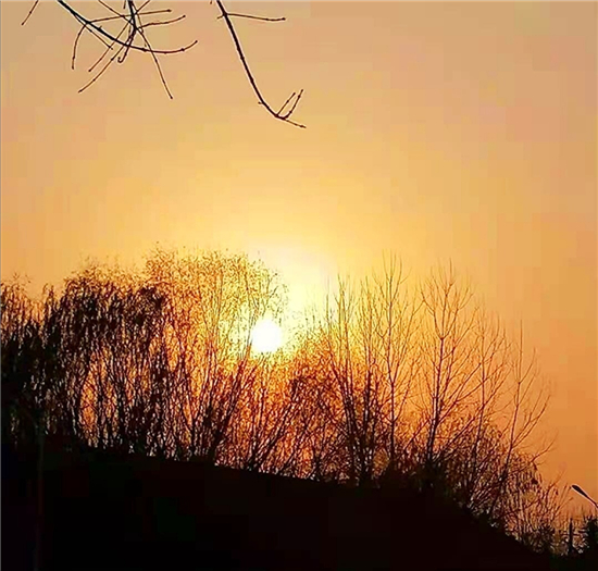 近日,我市接連幾天陽(yáng)光燦爛,蔚藍(lán)的天空格外美麗。尤其是傍晚時(shí)分,夕陽(yáng)西下,近處的樹干枝丫映襯著遠(yuǎn)處絢麗的天空,就像一副絕美的畫卷,令人沉醉。