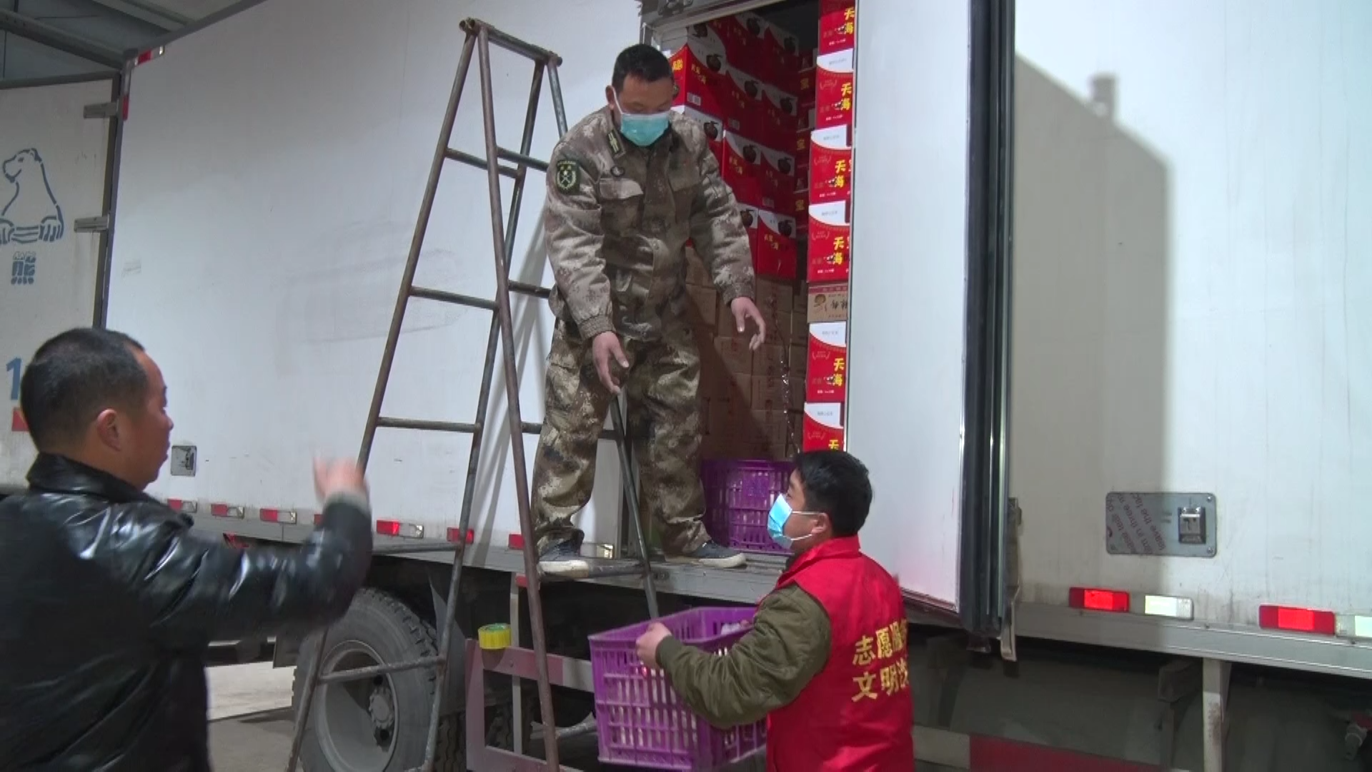 王國輝說:“咱們對接的就是河北南宮市,但是南宮市的工作人員考慮到咱們的安全,也不讓咱們進入南宮的地域,而是去衡水,衡水是低風險,現在不在風險區(qū),這是對方為我們著想。我們把貨到了衡水的外圍一個指定的開闊地方,我們把貨卸下來,我們撤離,然后南宮的同志再過來,轉運到他們車上去?!?/p>