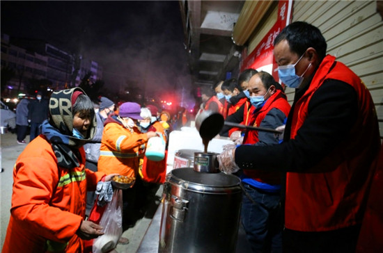 為了使廣大辛勤工作的勞動(dòng)者度過一個(gè)難忘的臘八節(jié),1月20日,項(xiàng)城市總工會(huì)黨組書記、常務(wù)副主席田雨帶領(lǐng)市總工會(huì)職工志愿服務(wù)隊(duì)在環(huán)城路愛心粥屋開展“一碗愛心粥·溫暖一座城”志愿服務(wù)活動(dòng),幫環(huán)衛(wèi)工人端飯、盛菜、洗碗,并給愛心粥屋送去了大米、面粉、食用油等物品,為他們送上節(jié)日的問候。