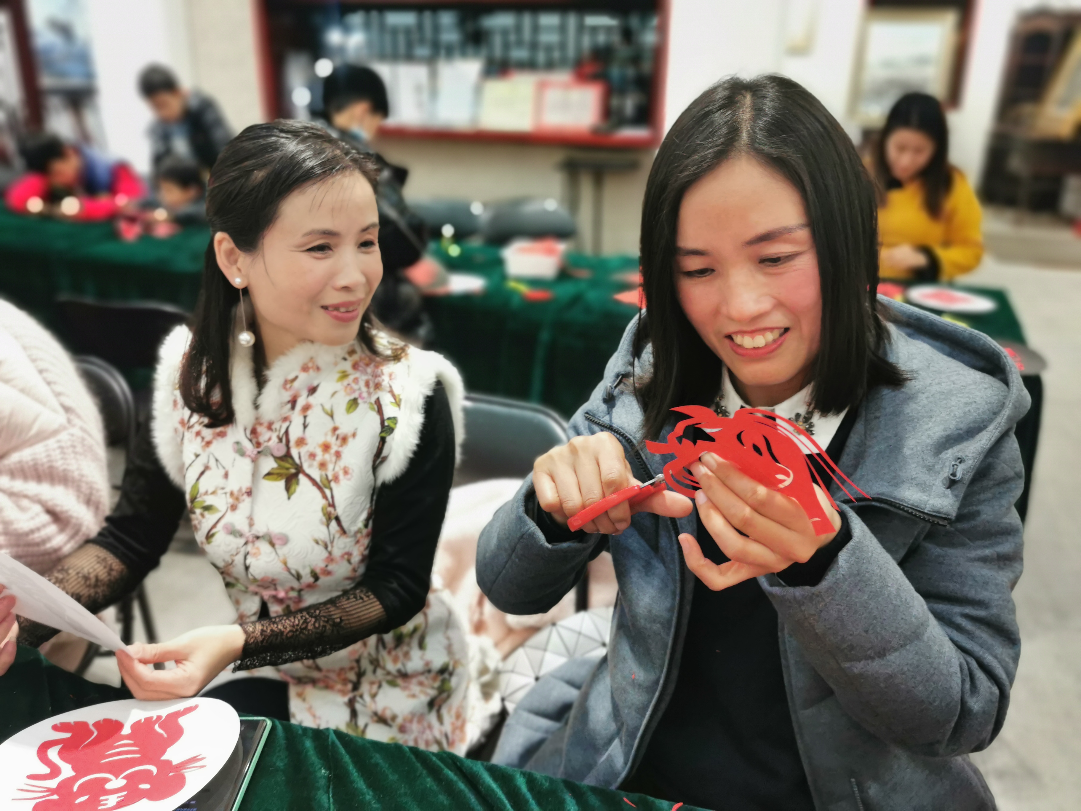 剪紙表現(xiàn)了中華民族淳厚雋永的民情與民風(fēng),是中國民間最為流行的一種藝術(shù)形式。為了讓大家學(xué)習(xí)、傳承這種極具傳統(tǒng)色彩的藝術(shù),蕓雅讀書社組織了學(xué)習(xí)剪紙的活動。現(xiàn)場,大家用剪刀在紅紙上剪出福、祿、壽、喜和各種圖案,極具喜慶吉祥的寓意,讓人們感受到了傳統(tǒng)新年的熱鬧。②8
