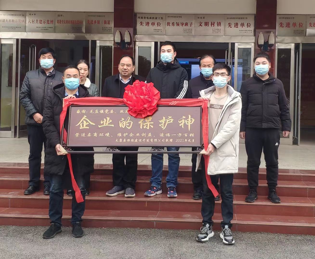 1月22日上午,太康縣毛莊鎮(zhèn)政府大門前人頭攢動(dòng),人聲鼎沸。在眾人的嘖嘖稱贊中一塊鐫刻著“企業(yè)的保護(hù)神”的牌匾被遞交到該鎮(zhèn)工作人員手中。
