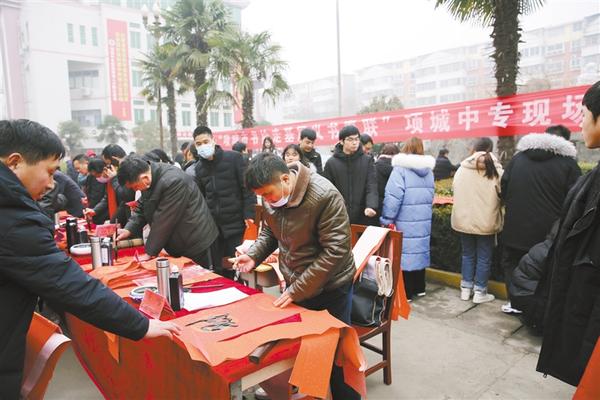 1月23日上午,項城市中等專業(yè)學(xué)校、市書法家協(xié)會聯(lián)合開展了“我們的節(jié)日——義寫春聯(lián)進校園”活動,黃樹民等6位書法家受邀來校為廣大師生義務(wù)書寫春聯(lián)。師生代表紛紛請名家為自己寫春聯(lián),整個活動洋溢著歡樂祥和的氣氛?!拔覀兊墓?jié)日——義寫春聯(lián)進校園”活動不僅繼承和發(fā)揚了中華優(yōu)秀傳統(tǒng)文化,而且豐富了在校師生的精神文化生活,助力了書香校園建設(shè),堅定了師生的文化自信。 李立云 郭新明 攝
