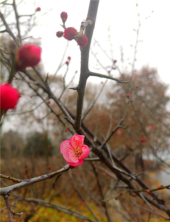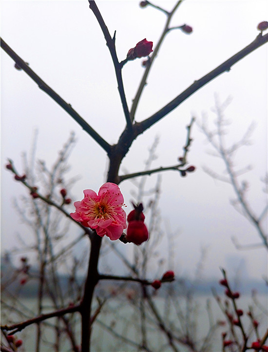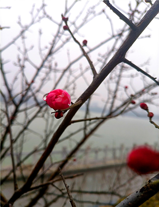 1月25日早晨,我市下了一場小雨。周口公園的梅樹上,幾朵梅花已經(jīng)綻放枝頭,被雨水滋潤過后的梅花嬌艷,凝結(jié)在梅花上的小水珠晶瑩剔透,讓梅花變得別有一番詩意。