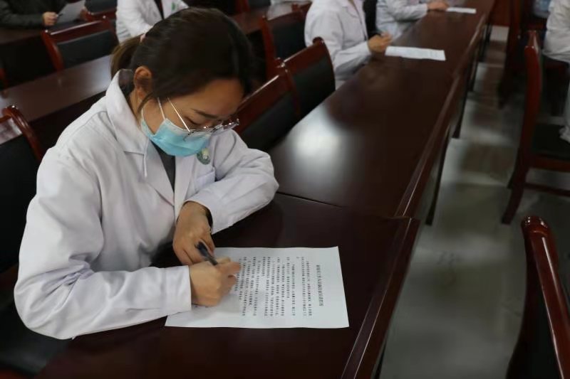 培訓(xùn)會(huì)上,參與體檢的相關(guān)醫(yī)護(hù)人員與該縣征兵辦公室現(xiàn)場簽訂、遞交《廉潔征兵責(zé)任書》《廉潔工作承諾書》《2021年度征兵體檢工作承諾書》。