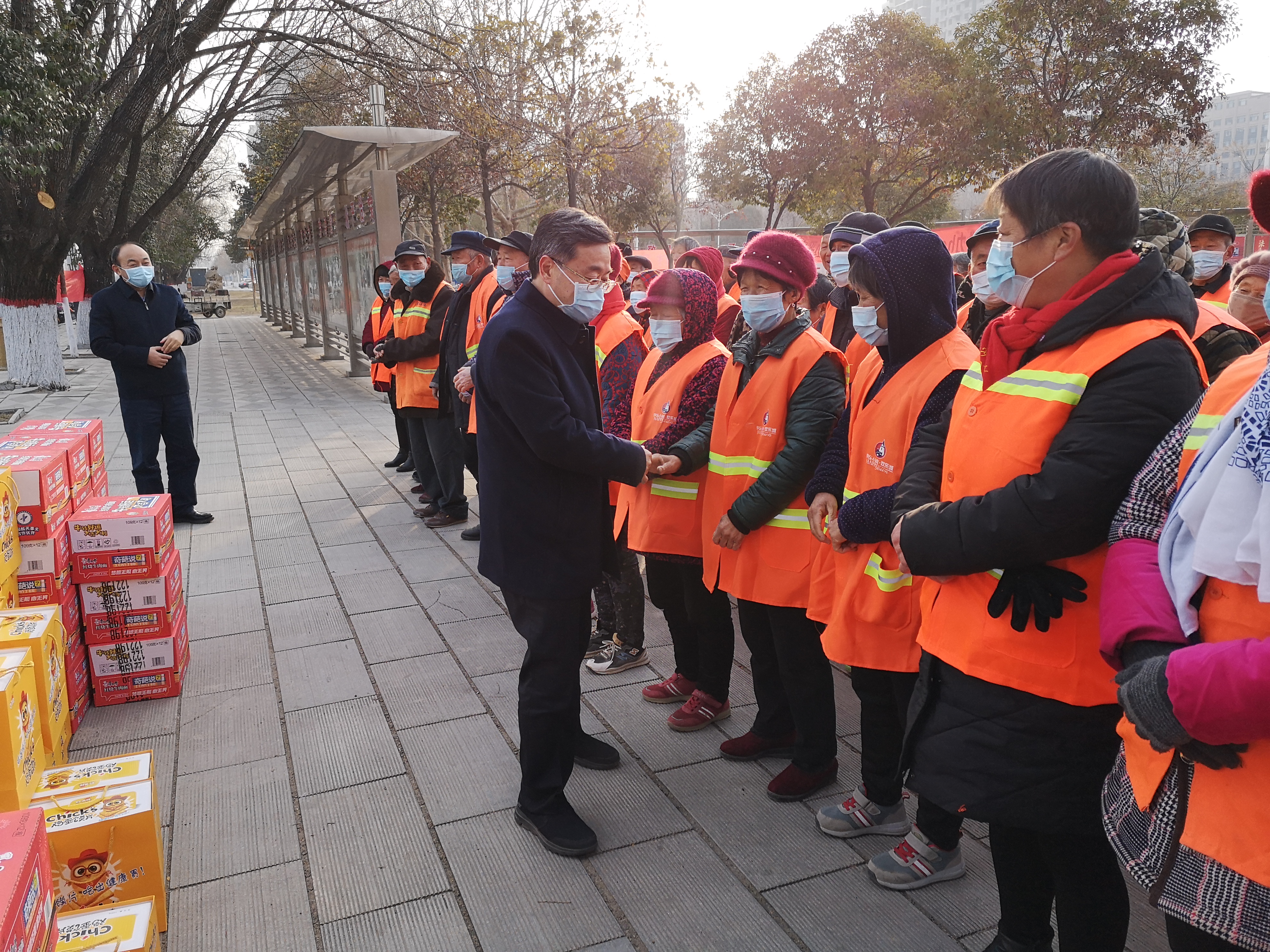 在行政新區(qū)全民健身廣場,皇甫立新、劉國慶同環(huán)衛(wèi)工人們一一握手,并代表縣四個(gè)班子向堅(jiān)守一線的環(huán)衛(wèi)工人致以新春的祝福,對(duì)他們在過去一年里付出的辛勤勞動(dòng)表示衷心感謝?;矢α⑿抡f,一年來,環(huán)衛(wèi)工人們起早貪黑、兢兢業(yè)業(yè),為改善居民生活環(huán)境和提升城市形象付出很多心血和汗水,取得了良好效果,城區(qū)環(huán)境和城市面貌有了很大改善,得到了社會(huì)各界的一致好評(píng),希望大家繼續(xù)發(fā)揚(yáng)愛崗敬業(yè)、無私奉獻(xiàn)的精神,把縣城衛(wèi)生打掃的更加干凈、整潔,為全縣人民歡度春節(jié)創(chuàng)造一個(gè)干凈舒適愉快的環(huán)境。