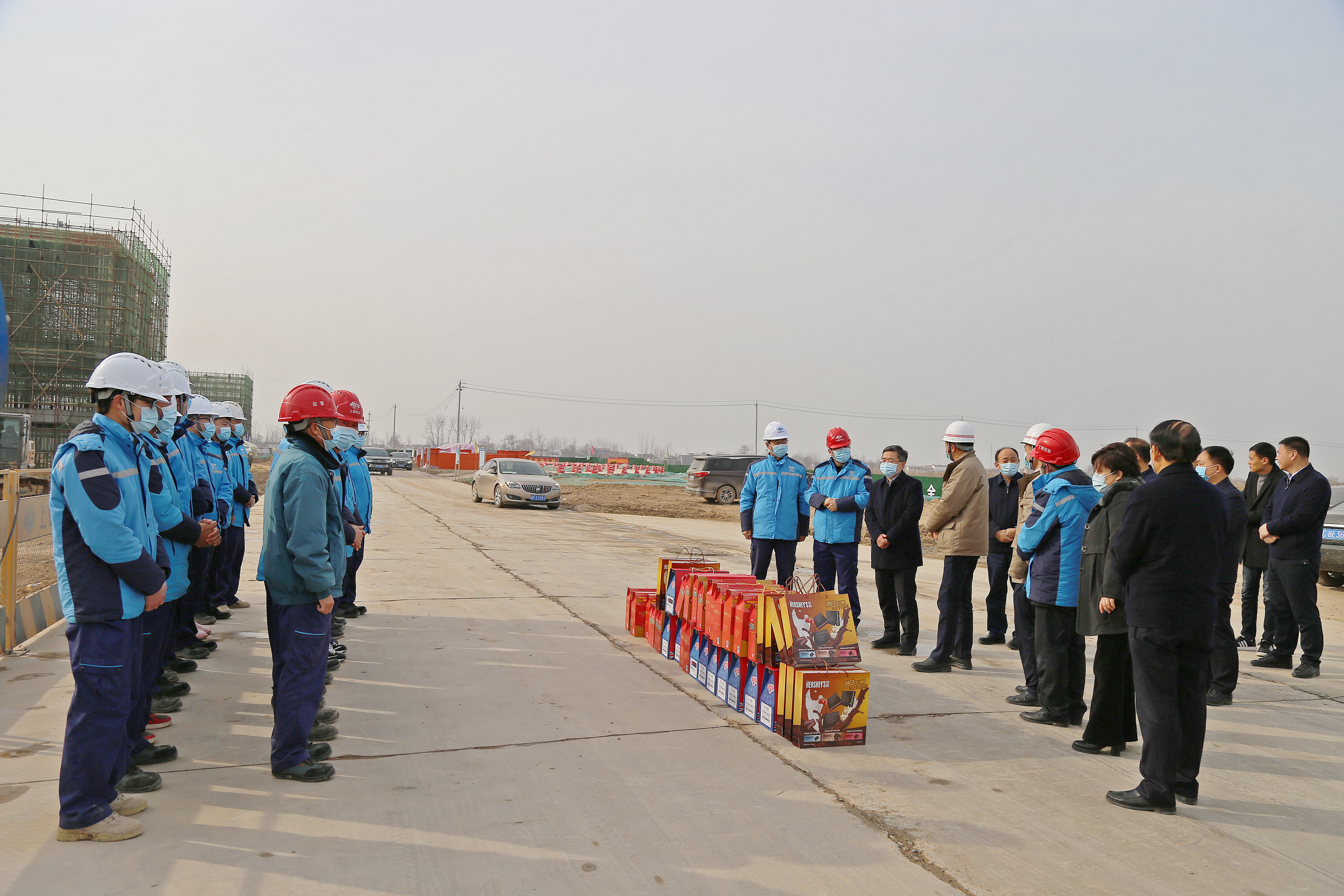 在安鋼產(chǎn)能置換項(xiàng)目部和一期一步施工現(xiàn)場,皇甫立新、劉國慶代表縣四個(gè)班子和全縣人民向奮戰(zhàn)在安鋼產(chǎn)能置換一線的建設(shè)者們表示感謝,并致以新春的祝福。皇甫立新說,安鋼產(chǎn)能置換項(xiàng)目自落戶沈丘以來,項(xiàng)目推進(jìn)如此之快,可謂是日新月異,氣勢恢宏,振奮人心,這既離不開省委省政府、市委市政府的關(guān)心支持,更離不開建設(shè)者們的辛苦付出。希望廣大建設(shè)者能夠繼續(xù)發(fā)揚(yáng)不怕苦不怕累的敬業(yè)精神,以時(shí)不我待的決心,全面加快項(xiàng)目建設(shè),確保如期實(shí)現(xiàn)2021年5月份建成出鋼的施工目標(biāo),繼續(xù)為周口、沈丘經(jīng)濟(jì)社會(huì)高質(zhì)量發(fā)展作出新的貢獻(xiàn)。