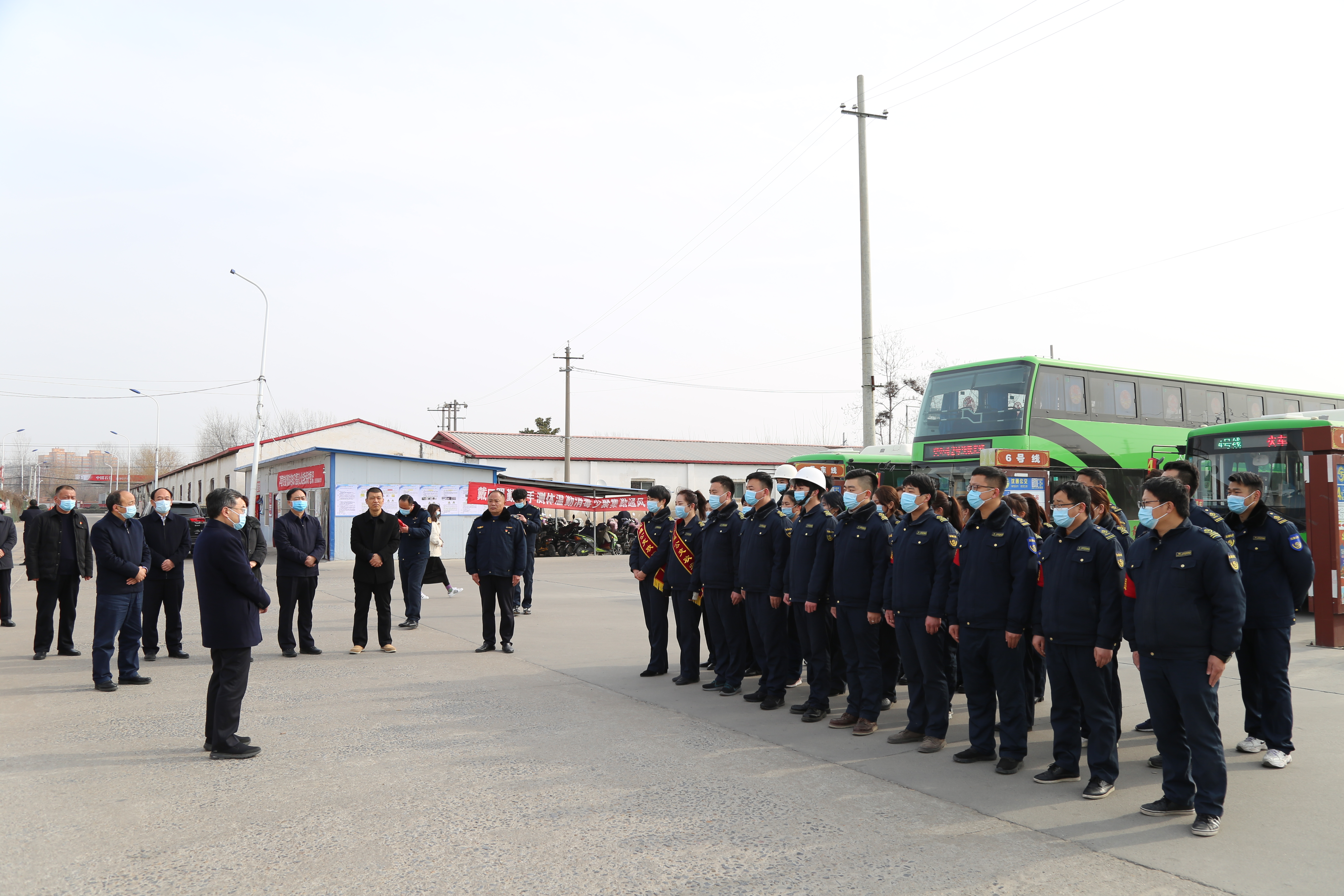 在縣公交公司,皇甫立新、劉國慶代表縣四個(gè)班子向堅(jiān)守在一線的干部職工和公交司機(jī)致以節(jié)日的問候,對(duì)他們長期以來為我縣交通事業(yè)做出的貢獻(xiàn)表示感謝,并祝大家新春快樂,闔家歡樂。在認(rèn)真聽取相關(guān)負(fù)責(zé)人關(guān)于春節(jié)期間車輛運(yùn)營和疫情防控等工作的匯報(bào)后,皇甫立新說,眼下,隨著春節(jié)臨近,人流量劇增,交通壓力和疫情防控壓力徒增,縣公交公司要繼續(xù)落實(shí)春節(jié)期間城區(qū)公交車免費(fèi)乘坐惠民政策,在嚴(yán)格落實(shí)疫情防控措施的基礎(chǔ)上,根據(jù)春節(jié)期間人流特點(diǎn),靈活調(diào)度車輛,合理安排各公交路線的車輛、臺(tái)數(shù)、營運(yùn)車次,統(tǒng)籌做好高鐵站、火車站、汽車站等運(yùn)輸點(diǎn)的接續(xù)接駁工作,優(yōu)化營運(yùn)時(shí)間和發(fā)車頻次,尤其是高鐵夜班車的統(tǒng)籌安排,確保乘客安全到家,不滯留一位乘客。同時(shí)希望堅(jiān)守崗位的公交職工要繼續(xù)提供優(yōu)質(zhì)服務(wù),文明安全駕駛,為全縣人民安全出行提供方便、搞好服務(wù)?;矢α⑿逻€叮囑公交公司負(fù)責(zé)人要合理安排好職工的工作和生活,為廣大一線工作人員安心工作提供堅(jiān)實(shí)的后勤保障,讓他們更加舒心愉快地服務(wù)廣大群眾。
