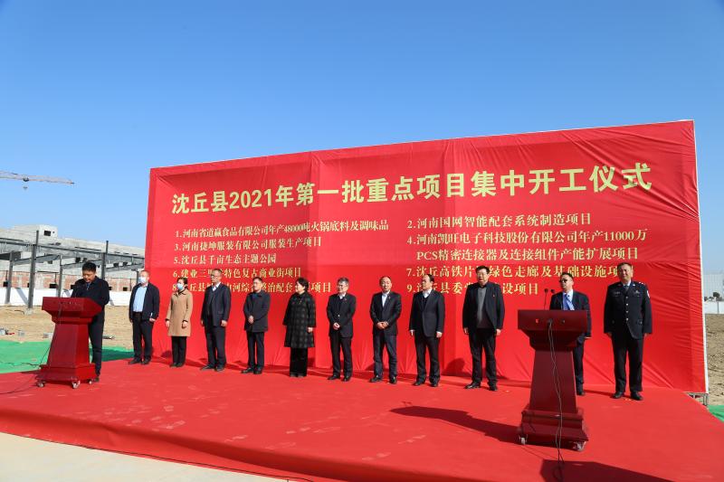 2月20日上午 ,沈丘縣舉行了2021年第一批重點(diǎn)項(xiàng)目集中儀式。此次集中開工項(xiàng)目共9個,總投資57.57億元,2021年計(jì)劃投資26.2億元。