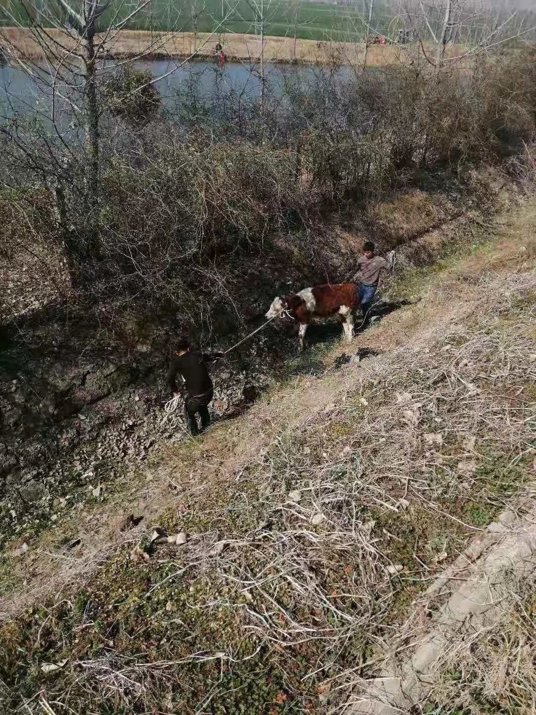 接警后,距離事發(fā)地點(diǎn)最近的周口高速二大隊(duì)項(xiàng)城中隊(duì)值班民警迅速趕往現(xiàn)場。民警到達(dá)現(xiàn)場后了解到,一輛專業(yè)運(yùn)輸肉牛貨車從北方到南方運(yùn)輸肉牛,有兩頭牛在行駛途中突然受驚撞破了車上鋼管圍欄跳到了高速公路上,其中一頭又越過中央隔離護(hù)欄跑到了對向車道。一輛行駛中轎車躲避不及與牛發(fā)生碰撞,導(dǎo)致車輛嚴(yán)重?fù)p壞,牛被撞死。另一頭沿著高速公路護(hù)欄來回折騰著跑,過路車輛紛紛躲避,形勢也十分危險(xiǎn)。民警立即指揮來車暫停,招呼司機(jī)等人把牛趕下高速公路邊溝,減少危險(xiǎn),然后分段站在護(hù)欄處把守,讓有捉牛經(jīng)驗(yàn)的車主和司機(jī)在邊溝內(nèi)捉牛。