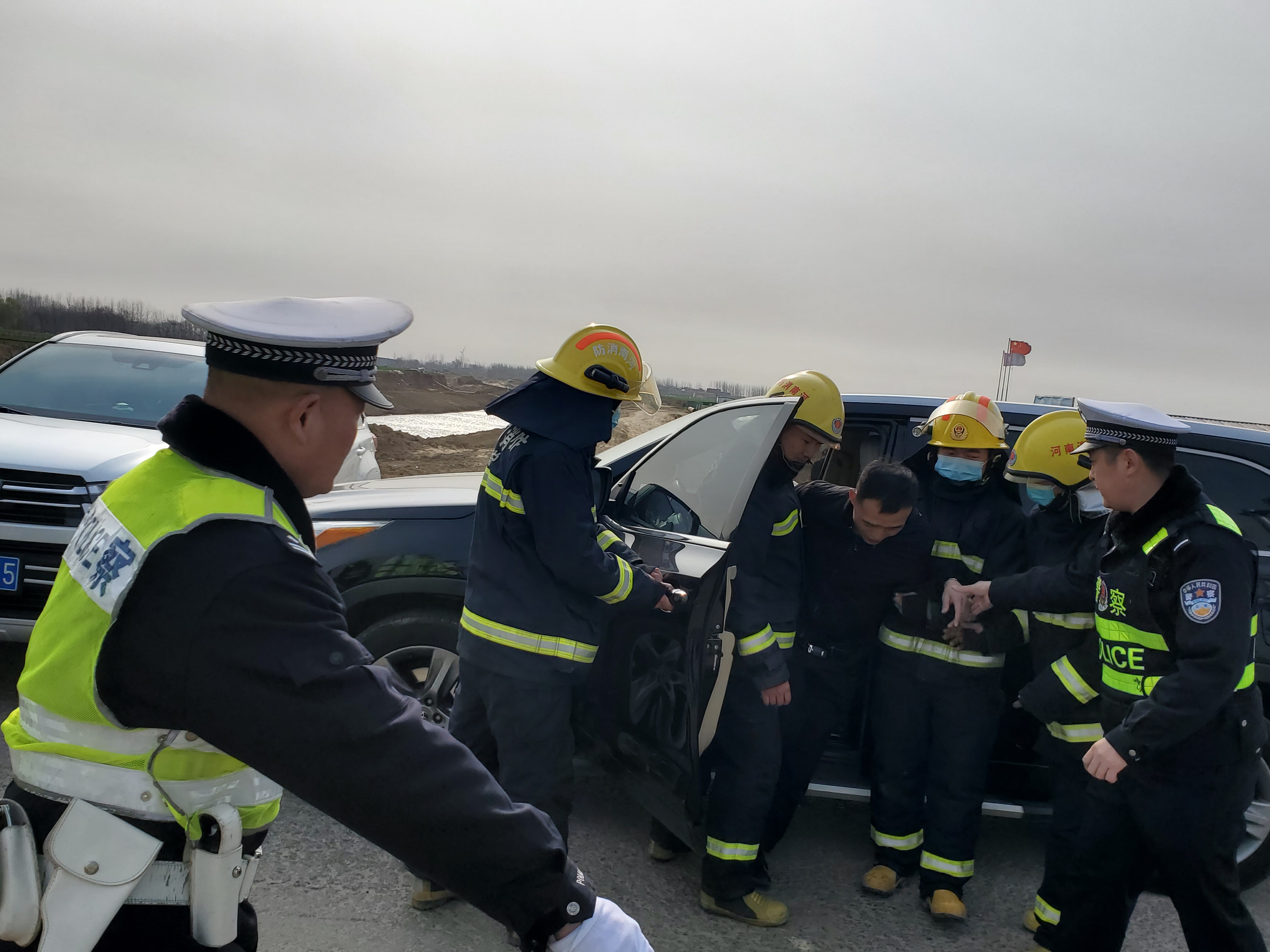 演練模擬2月23日10許,在G220國道河南安徽二省交界友誼橋處,二輛越野車在道路中心線處相撞,二輛車駕駛?cè)祟^部受傷流血,車門被卡,車輛起火冒煙道路嚴(yán)重?fù)矶?、情況危急。接到報警后,交警部門立即向上級進(jìn)行匯報,“四位一體”聯(lián)動工作機(jī)制隨即啟動,相關(guān)部門迅速趕往現(xiàn)場開展事故處置和救援工作。同時會同交警、屬地派出所,消防救援、醫(yī)療救護(hù)部門一起協(xié)助開展相關(guān)工作。隨后事故民警按照現(xiàn)場勘查要求,迅速對現(xiàn)場進(jìn)行勘查、拍照,提取相關(guān)證據(jù),配合搶險、醫(yī)療施救各部門,并對現(xiàn)場遺留物品進(jìn)行清理、登記并妥善保管??辈榻Y(jié)束后交警部門解除警戒區(qū),將車輛疏導(dǎo)、分流完畢后撤離現(xiàn)場。