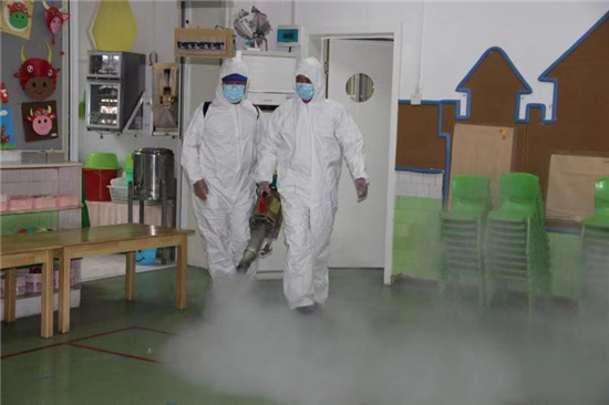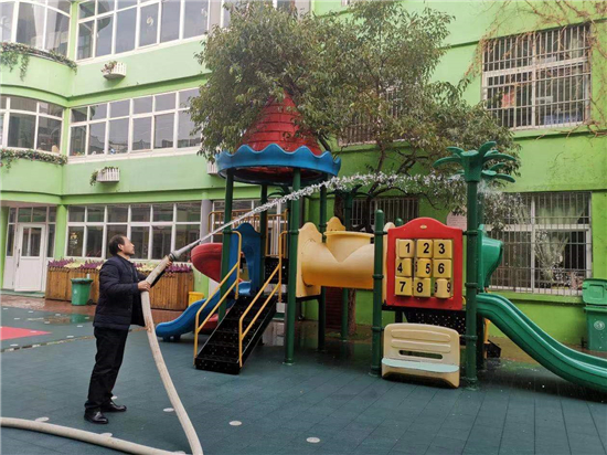 2月27日下午, 周口市市直幼兒園聯(lián)系周口市藍(lán)天救援隊(duì)專(zhuān)業(yè)消殺人員,對(duì)幼兒園的公共區(qū)域環(huán)境、大型玩具、走廊、活動(dòng)室等場(chǎng)所逐步實(shí)施消殺,重點(diǎn)對(duì)樓道、樓梯扶手、衛(wèi)生間等關(guān)鍵區(qū)域?qū)嵤┟芗?,做到全面、徹底、不留死角?/p>