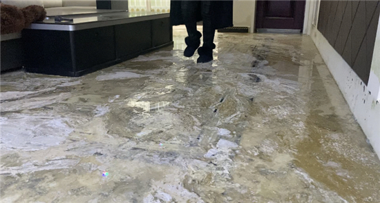 看著精心裝修的房子,被下水道的污水浸泡了每個角落,新買的家具被泡,墻體被污水肆意的畫成“涂鴉”。看到尚未入住的新房這般“慘烈”模樣,石女士氣不打一處來?!罢l能想到下水道里的污水能從洗碗池里溢出來啊,污水隨著地板的縫隙滲入了地板下面,前3次出現(xiàn)這種情況后,屋里已經(jīng)不成樣子,為了孩子結(jié)婚,這又重新裝修了一邊,家具也是剛換的,又被污水浸泡了,這都是第4次了,每次的損失都是我自己承擔(dān)的?!笔繗鈶嵉卣f。