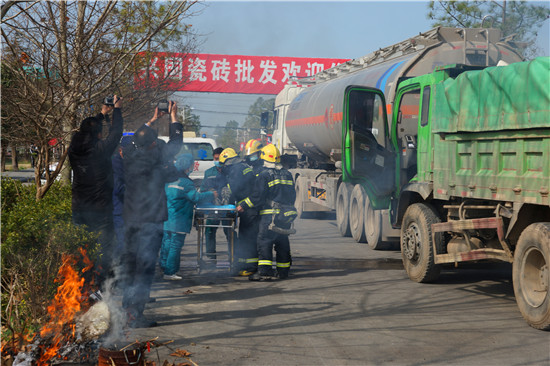 據(jù)介紹,通過本次演練,河南省公安交警總隊、周口市公安局、項城市委市政府進一步檢驗了對危險品運輸車事故的應(yīng)急反應(yīng)和處置能力及省際?;方煌ㄊ鹿示仍幹玫目茖W(xué)性、適用性和可操作性,促進了應(yīng)急搶險工作的規(guī)范化、常態(tài)化,加強了交警、應(yīng)急、環(huán)保、消防、醫(yī)療、交通、搶險救援等各部門協(xié)作聯(lián)動,提高了應(yīng)急管控水平,取得了良好的社會效果。②10