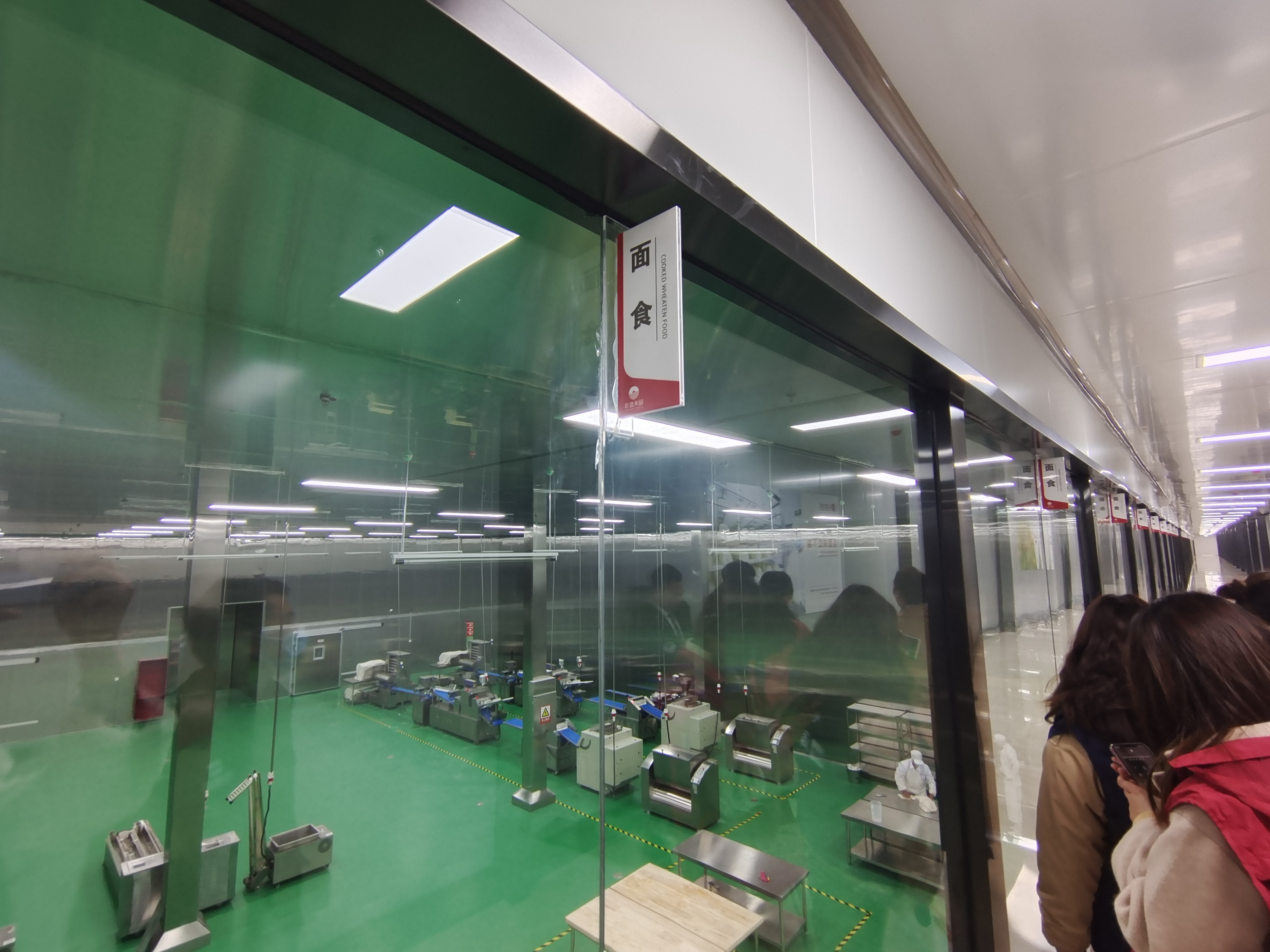 在位于川匯區(qū)女媧路88號的乾盛央廚,直播團(tuán)隊用圖文形式實時現(xiàn)場呈現(xiàn)午餐制作整體環(huán)境。隔著參觀走廊上的玻璃,全線開機(jī)一小時能出12000個無添加饅頭的面食車間,從生米到熟飯全自動機(jī)械化制作的米飯車間,全程紫外線消毒、菜品全清真的烹飪車間,流水線上分盒分箱并與物流區(qū)無縫銜接的分餐生產(chǎn)線,這些在主播與乾盛央廚工作人員的一問一答中呈現(xiàn)在觀看直播的家長朋友們面前。“我們不僅做飯,餐具也由我們提供,餐具是PPP材料,耐高溫,安全無毒,筷子、勺子是不銹鋼的。”工作人員介紹。