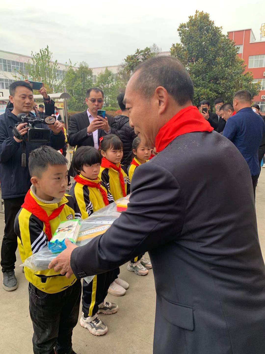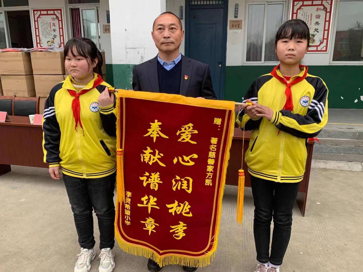方凱說,自己在取得成功以后,始終沒有忘記社會(huì)上的弱勢(shì)群體,沒有忘記留守兒童,沒有忘記孤寡老人,堅(jiān)持捐款捐物幫助他們渡過難關(guān)。10多年來,累計(jì)捐款捐物近2000萬元。今天,我為希望小學(xué)捐贈(zèng)價(jià)值18萬元的校服,為30名學(xué)生每人發(fā)放書包、文具和500元慰問金。在這里,我可以告訴大家,今天來希望小學(xué)是第一次,但不是最后一次。今后我會(huì)年年來、經(jīng)常來。方凱的話音未落,現(xiàn)場響起熱烈的掌聲。