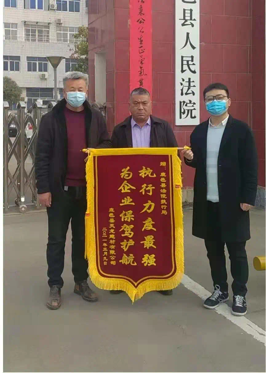 鹿邑縣某建材公司與胡某商砼買賣合同一案,雙方簽訂了價值23萬多元的商砼買賣合同,但是胡某沒有按照合同約定付款。3月2日,鹿邑縣人民法院執(zhí)行立案系統(tǒng)受理后,執(zhí)行法官當天立案、當天發(fā)起查控措施、當天凍結被執(zhí)行人財產(chǎn),當天就執(zhí)結了案件,贏得了涉案企業(yè)贊譽,并為執(zhí)行法官送來了一面書有“執(zhí)行力度最強 為企業(yè)保駕護航”的錦旗表示感謝。