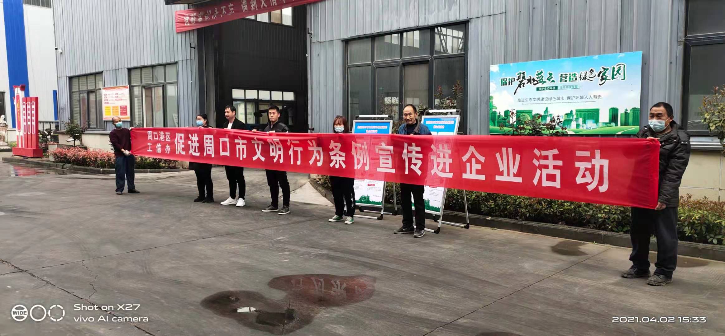 為迅速掀起學(xué)習(xí)宣傳《文明行為促進條例》熱潮,不斷提升廣大企業(yè)員工文明法治意識、社會責(zé)任意識,運用法律法規(guī)規(guī)范促進文明行為,4月2日下午,周口港區(qū)工信辦組織人員開展宣傳《周口市文明行為促進條例》進企業(yè)的活動。