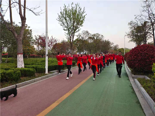 “一!二!三!四!”4月4日清晨,周口公園內(nèi)一支健步走愛好者身著紅色衛(wèi)衣,在潦亮的口號聲中,邁著嬌健的步伐,在鮮花綠葉中行進,撒下一路青春的氣息。②7