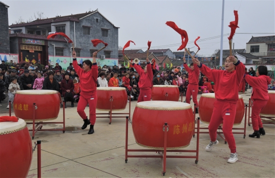 4月6日上午,商水縣黃寨鎮(zhèn)王潭行政村腰鼓隊(duì)在村文化廣場(chǎng)排練節(jié)目。該村近日利用清明節(jié)外出返鄉(xiāng)人員增多的機(jī)會(huì)成立鄉(xiāng)賢會(huì),組織捐款20多萬元,作為鄉(xiāng)村振興基金,專項(xiàng)用于村內(nèi)環(huán)境整治、扶弱濟(jì)困、文化娛樂等。受到資助的村腰鼓隊(duì)成員表示,要繼續(xù)打好鑼、擂響鼓,助力鄉(xiāng)村振興。周口日?qǐng)?bào)·周道客戶端記者 付永奇 攝