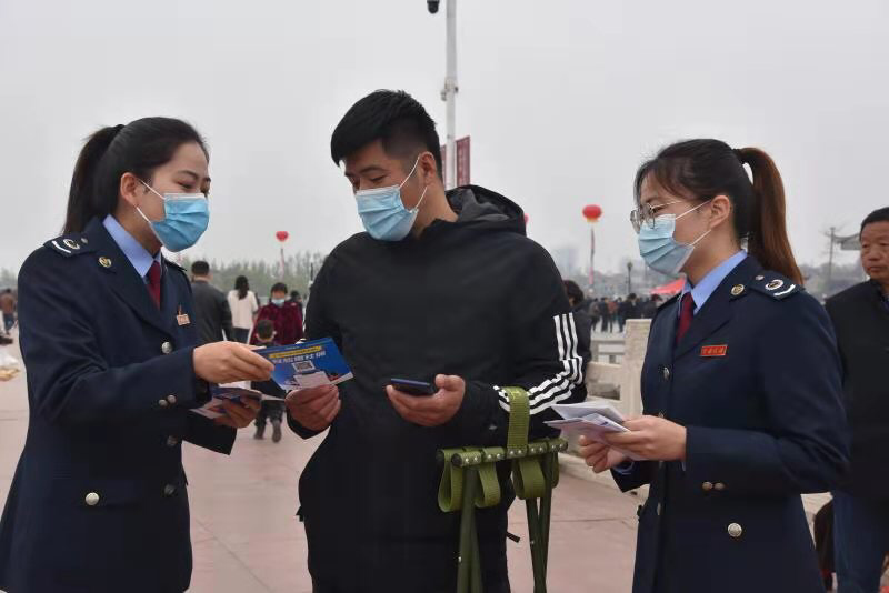 農歷二月二至三月三,是淮陽太昊陵一年一度的大型傳統(tǒng)廟會,吸引全國各地的萬千游客前來尋根問祖。4月7日,淮陽區(qū)稅務局以“便民辦稅春風行動”為契機,組織稅法宣傳志愿者深入太昊陵廣場,開展“送稅法進廟會”宣傳活動,向逛會游客、群眾和廟會攤主發(fā)放稅法宣傳資料。