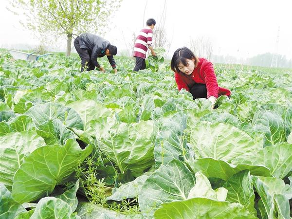 4月14日,沈丘縣周營鎮(zhèn)黃孟營村的一處生態(tài)蔬菜種植基地,村民正在收獲訂單甘藍(lán)。近年來,該鎮(zhèn)通過政策扶持,鼓勵群眾因地制宜規(guī)模有序發(fā)展特色蔬菜種植,采取“基地+合作社+農(nóng)戶”的種植模式,促進(jìn)農(nóng)業(yè)增效、農(nóng)民增收,助力鄉(xiāng)村振興。