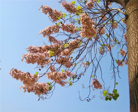 “莫道春花已殆盡,點滴桐花春不老?!卑倩幤G,熱鬧了整個春天。就在萬紫千紅紛紛謝幕的時候,梧桐花開了。