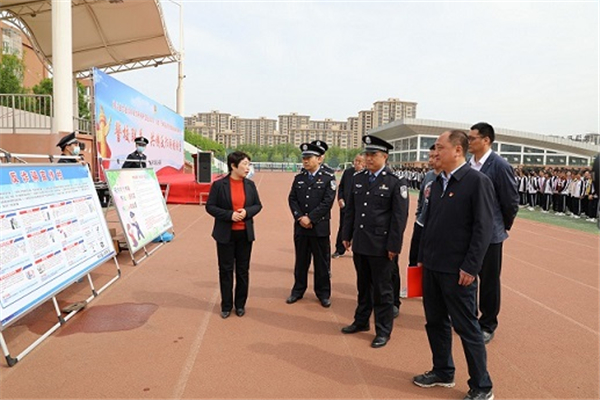 啟動(dòng)儀式結(jié)束后,出席活動(dòng)的領(lǐng)導(dǎo)、師生、民警觀看了反詐騙宣傳展板。