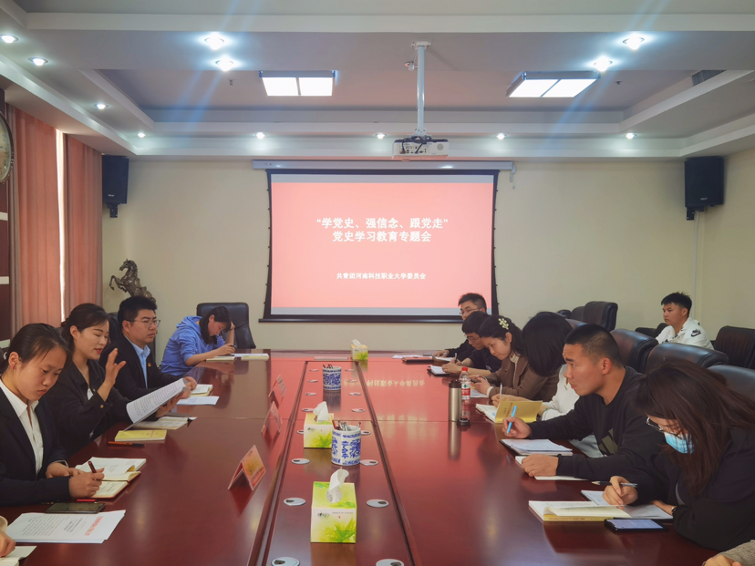 為認(rèn)真貫徹習(xí)近平總書記在黨史學(xué)習(xí)教育動員大會上的重要講話精神,引領(lǐng)廣大黨員深入學(xué)習(xí)黨的歷史,深化青年厚植愛黨、愛國、愛社會主義的情感,4月29日,共青團(tuán)河南科技職業(yè)大學(xué)委員會召開“學(xué)黨史、強(qiáng)信念、跟黨走"黨史學(xué)習(xí)教育專題會。