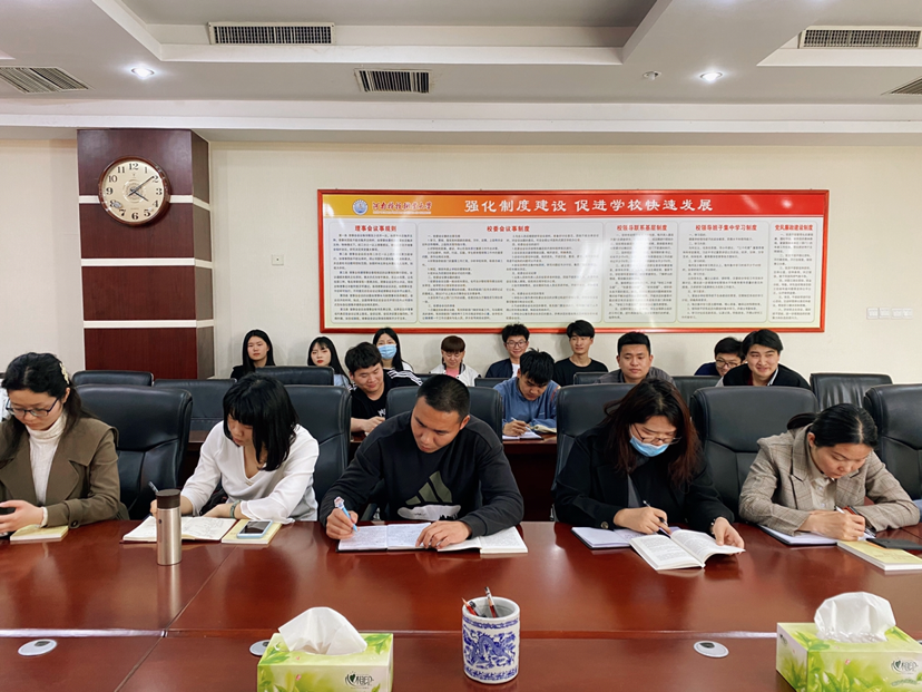 會上,校團(tuán)委副書記孔建富闡述了開展黨史學(xué)習(xí)教育的重要意義,要求學(xué)校黨員、干部要端正學(xué)習(xí)態(tài)度,高度重視黨史學(xué)習(xí),用心、用腦深刻學(xué)習(xí)領(lǐng)會。同時(shí),要把黨史學(xué)習(xí)教育同服從服務(wù)于黨結(jié)合起來,同學(xué)校教育工作大局結(jié)合起來,同分管工作落實(shí)結(jié)合起來,同本職工作結(jié)合起來,做好學(xué)習(xí)成果轉(zhuǎn)化,做到學(xué)習(xí)工作兩不誤、兩促進(jìn),切實(shí)把黨史學(xué)習(xí)教育作為推動學(xué)校教育工作發(fā)展的有力抓手,變?yōu)楣ぷ鞲哔|(zhì)量落實(shí)的重要途徑。