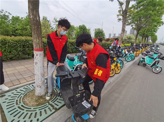 當(dāng)天上午,由河南科技職業(yè)大學(xué)志愿者組成的綠色低碳騎行隊(duì)伍,從河南科技職業(yè)大學(xué)正門出發(fā)騎行,用實(shí)際行動(dòng)宣傳愛護(hù)地球、倡導(dǎo)綠色騎行的理念。騎行結(jié)束后,志愿者們組成宣傳引導(dǎo)隊(duì)伍,走上大街,引導(dǎo)、糾正共享單車規(guī)范停放,對(duì)不規(guī)范停放的共享單車進(jìn)行整齊擺放,清理共享單車上亂張貼的小廣告,繼續(xù)開啟當(dāng)日第二場共享單車宣傳引導(dǎo)志愿服務(wù)活動(dòng)。