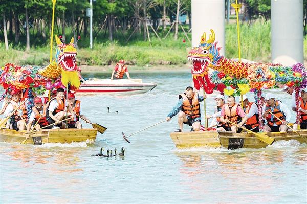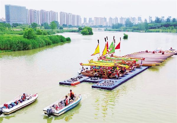 • 6月20日上午,周口市第八屆中華龍舟賽激烈進(jìn)行中。當(dāng)日,河南省第十一屆中華軒轅龍舟大賽暨周口市第八屆中華龍舟賽在周口市水上運(yùn)動(dòng)中心開(kāi)賽。賽前,水上拔河、翎船捕鴨等傳統(tǒng)表演讓觀眾大飽眼福。