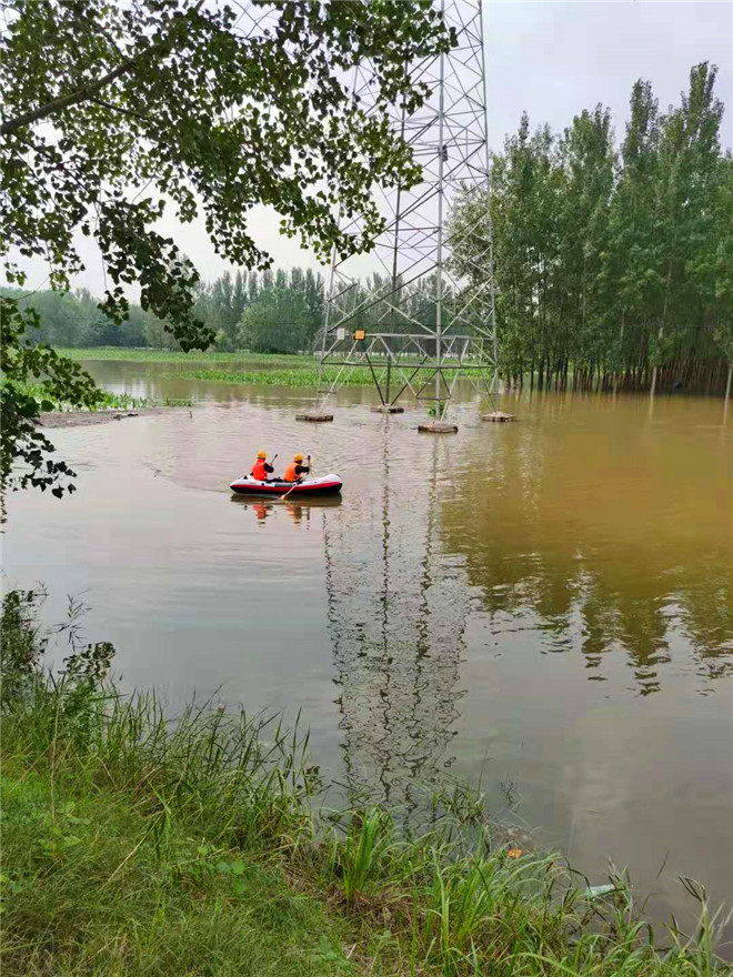 為了確保周口主網(wǎng)高壓線路安全穩(wěn)定運(yùn)行,連日來,“小毛”毛學(xué)用和他的同事克服困難劃著皮劃艇,人工近距離檢查桿塔基礎(chǔ)泡水情況。