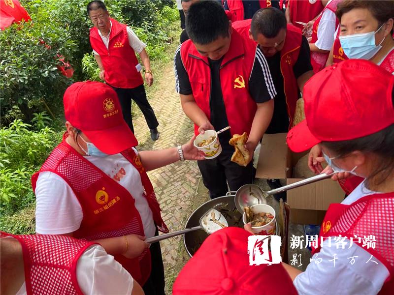愛心涌動顯真情。三所樓村、后石羊村、黃橋村、裴莊村、肖橫村等自發(fā)成立了防汛救災(zāi)志愿者服務(wù)隊,特別是三所樓村支部書記李位霞帶領(lǐng)村志愿者每天炕油饃、燉雞子等,為縣應(yīng)急救援物資儲備點工作人員和志愿者送去愛心餐;后石羊村志愿者也自發(fā)為儲備點送去飯菜,并幫助裝卸救災(zāi)物資;黃橋村志愿者幫助儲備點和鄉(xiāng)黨委、政府裝卸物資,他們都是無怨無悔、真情奉獻。還有一些不愿透露姓名的黃橋籍和外地愛心人士也捐贈生活物資,他們有的是企業(yè)老板、退役軍人、有的在湖北、廣州、鄭州、周口等地工作,主動為防汛救災(zāi)伸出援助之手。②5