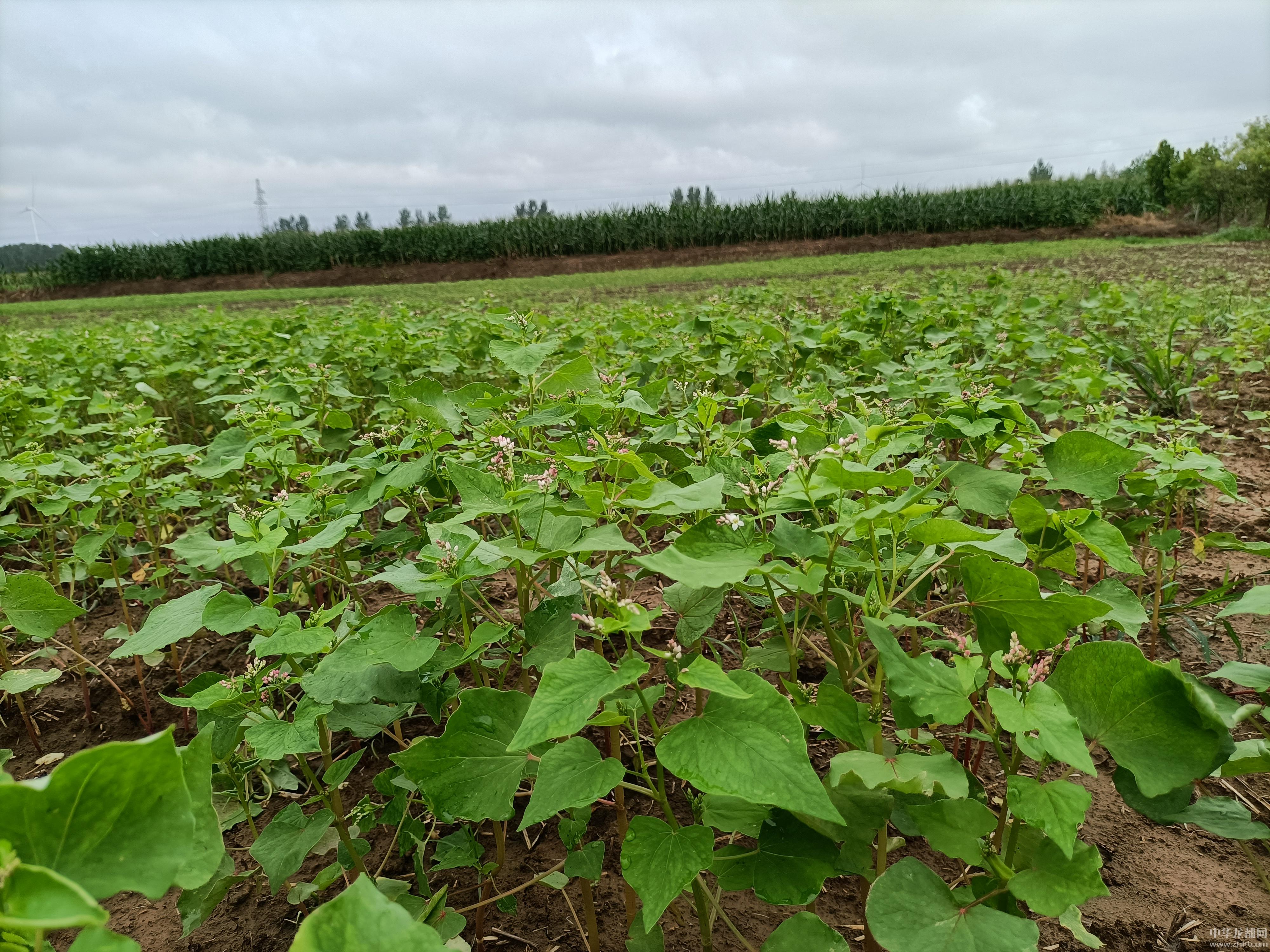 田里是災(zāi)后補(bǔ)種的水果玉米和蕎麥,他指著田里的綠苗,從西向東給記者依次介紹:“西邊的玉米苗最高,你看都長(zhǎng)到9葉1芯了,是7月31日播的;這邊稍矮一些,是8月3日種的,東邊更矮的是8月6日種的。當(dāng)時(shí)是,田里的積水排除一塊耕種一塊,等最東面的地塊可以栽種時(shí),已經(jīng)過了水果玉米適播期,我就從內(nèi)蒙古引進(jìn)苦蕎種子,種了下去,你看已經(jīng)開花了?!?/p>