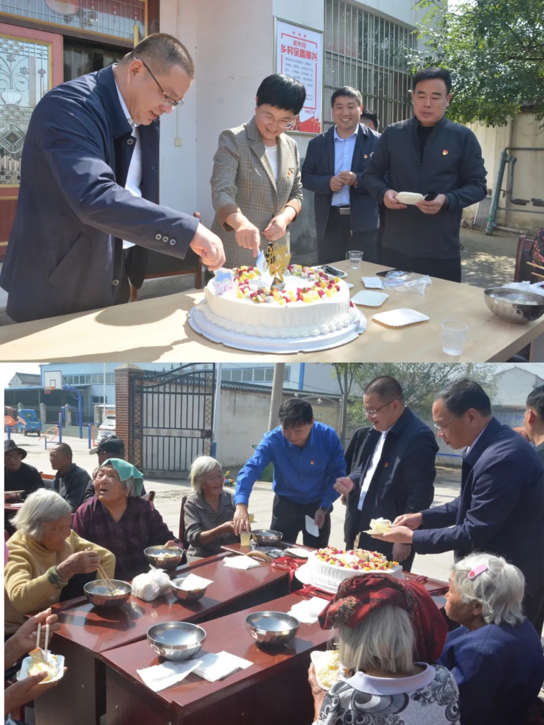 活動(dòng)現(xiàn)場,市直機(jī)關(guān)工委書記閆冬梅為寫有“九九重陽節(jié) 濃濃敬老情”的大蛋糕切下第一刀。黨員同志為每位老人端上蛋糕,并送上節(jié)日祝福。大家一邊品嘗甜蜜的蛋糕,一邊共憶舊歲、共敘家常、共慶佳節(jié)、共話發(fā)展,現(xiàn)場氣氛溫馨祥和。