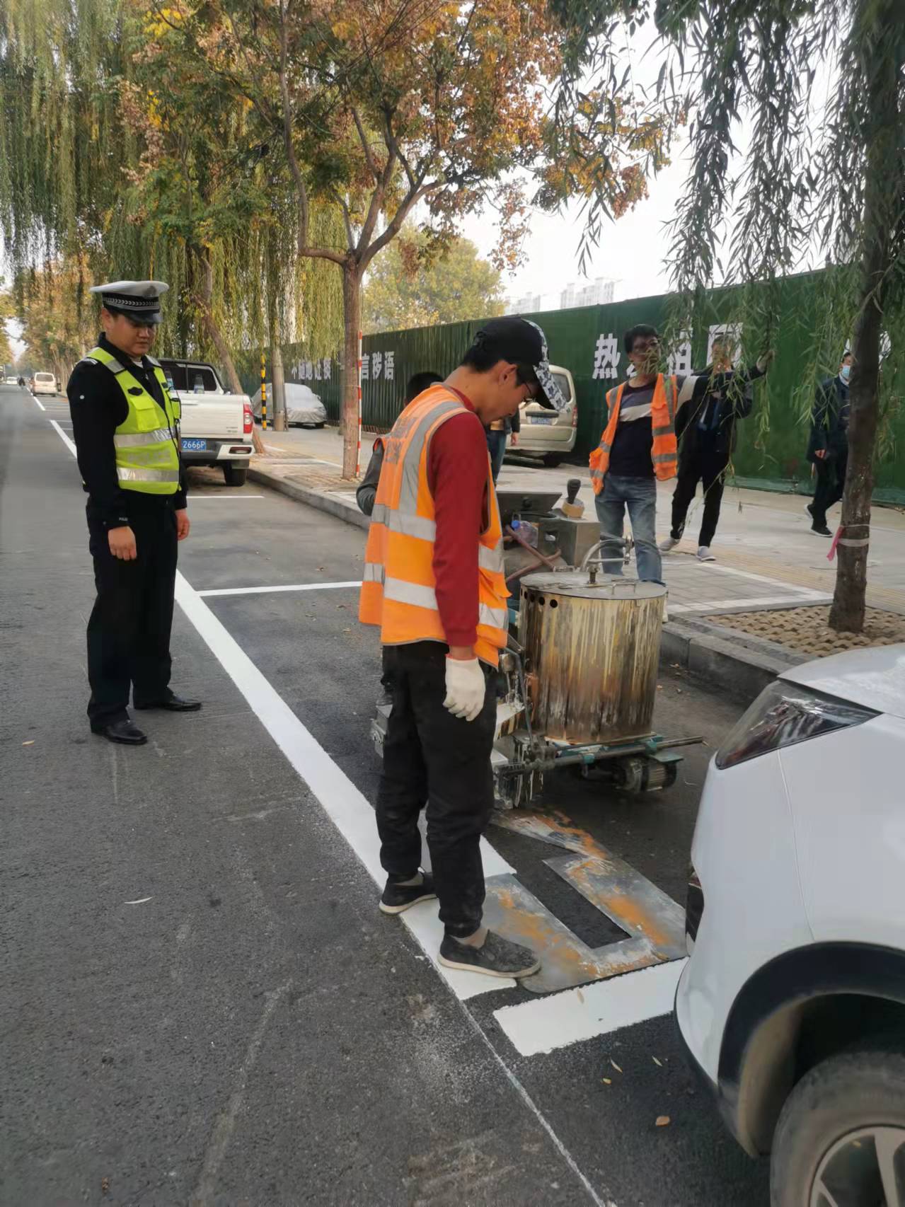 當(dāng)日下午,記者在黃河路看到,施工人員正在熟練地操作標(biāo)線機(jī),認(rèn)真細(xì)致地施劃減速震蕩標(biāo)線。市公安局交通管理支隊(duì)設(shè)施維護(hù)中心(以下簡(jiǎn)稱設(shè)施維護(hù)中心)工作人員黃勇說:“在創(chuàng)文期間,設(shè)施維護(hù)中心加大對(duì)道路護(hù)欄的清洗力度,完善交通信號(hào)燈的維護(hù),清除學(xué)校門口不合理的停車位,修剪遮擋交通設(shè)施的樹枝,排除路口的交通隱患。”