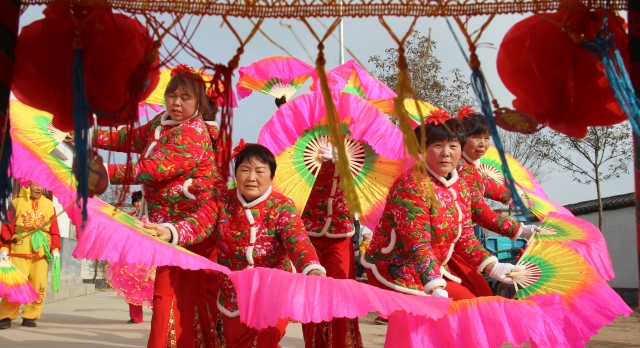 2月13日,商水縣郝崗鎮(zhèn)呂場(chǎng)村文藝愛(ài)好者表演了旱船、扇子舞等傳統(tǒng)節(jié)目。