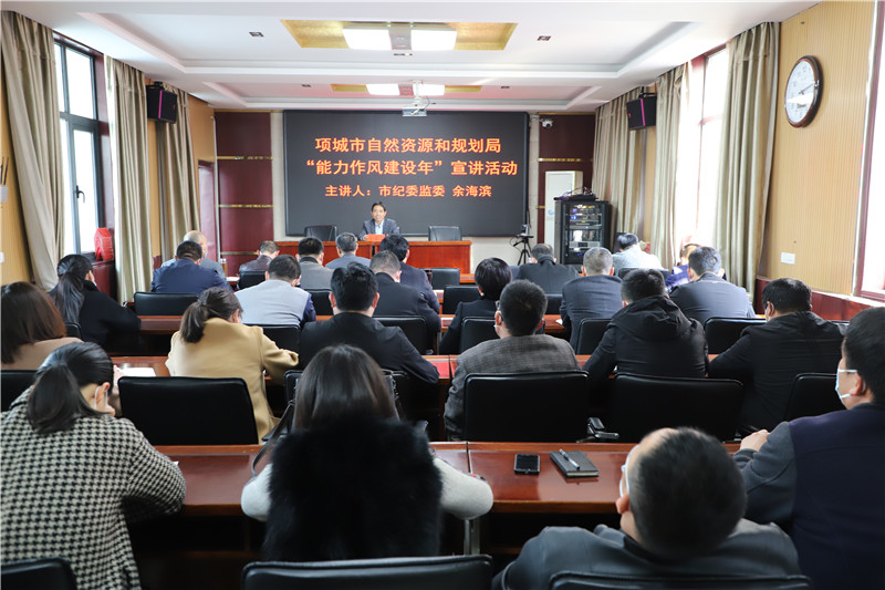 為推進能力作風(fēng)建設(shè)深入開展,使廣大黨員干部進一步深刻理解開展能力作風(fēng)建設(shè)的目的和意義,近日,項城市自然資源和規(guī)劃局開展“能力作風(fēng)建設(shè)年”主題宣講活動,特邀請項城市紀(jì)委監(jiān)委宣傳部宣講師余海濱前來授課。