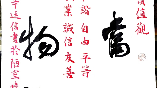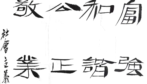程度 中國書法家協(xié)會理事、隸書委員會委員,北京書法家協(xié)會理事,北京市朝陽區(qū)書法家協(xié)會秘書長(社會主義核心價值觀)