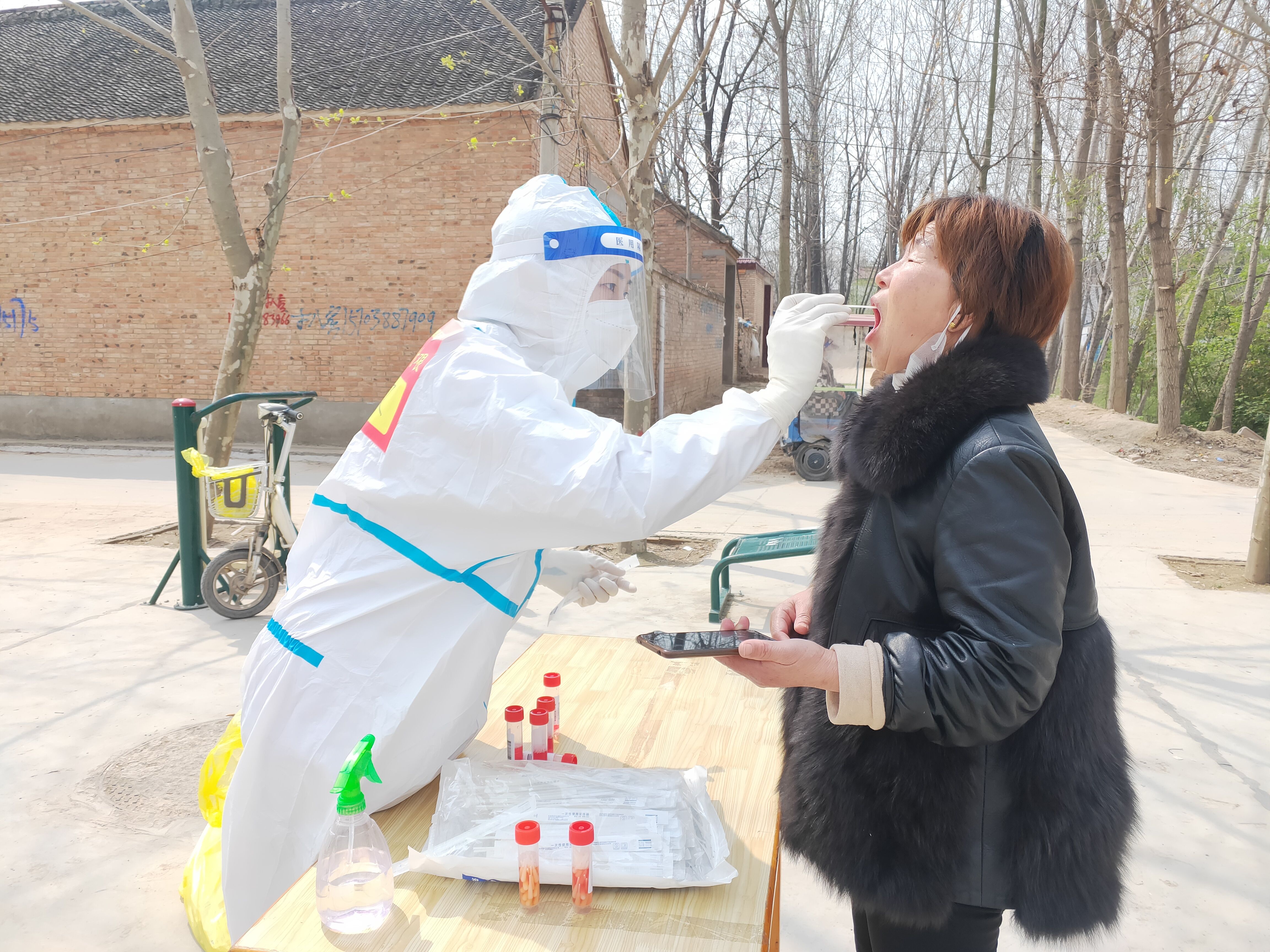 王文文和同事們于當(dāng)日早7點到達(dá)太康廣場進行培訓(xùn)。培訓(xùn)結(jié)束后,在對接人的引領(lǐng)下,王文文帶領(lǐng)分隊46人前往太康縣張集鎮(zhèn)開展支援工作,主要負(fù)責(zé)張集鎮(zhèn)15個自然村,每日對近2萬名群眾進行核酸采集,他們分為15個組,一組負(fù)責(zé)一個采集點。第一天大家都沒有經(jīng)驗,工作中,王文文不時接到其他組隊員的咨詢電話,王文文詳細(xì)地為他們一一解答,保證工作順利開展。