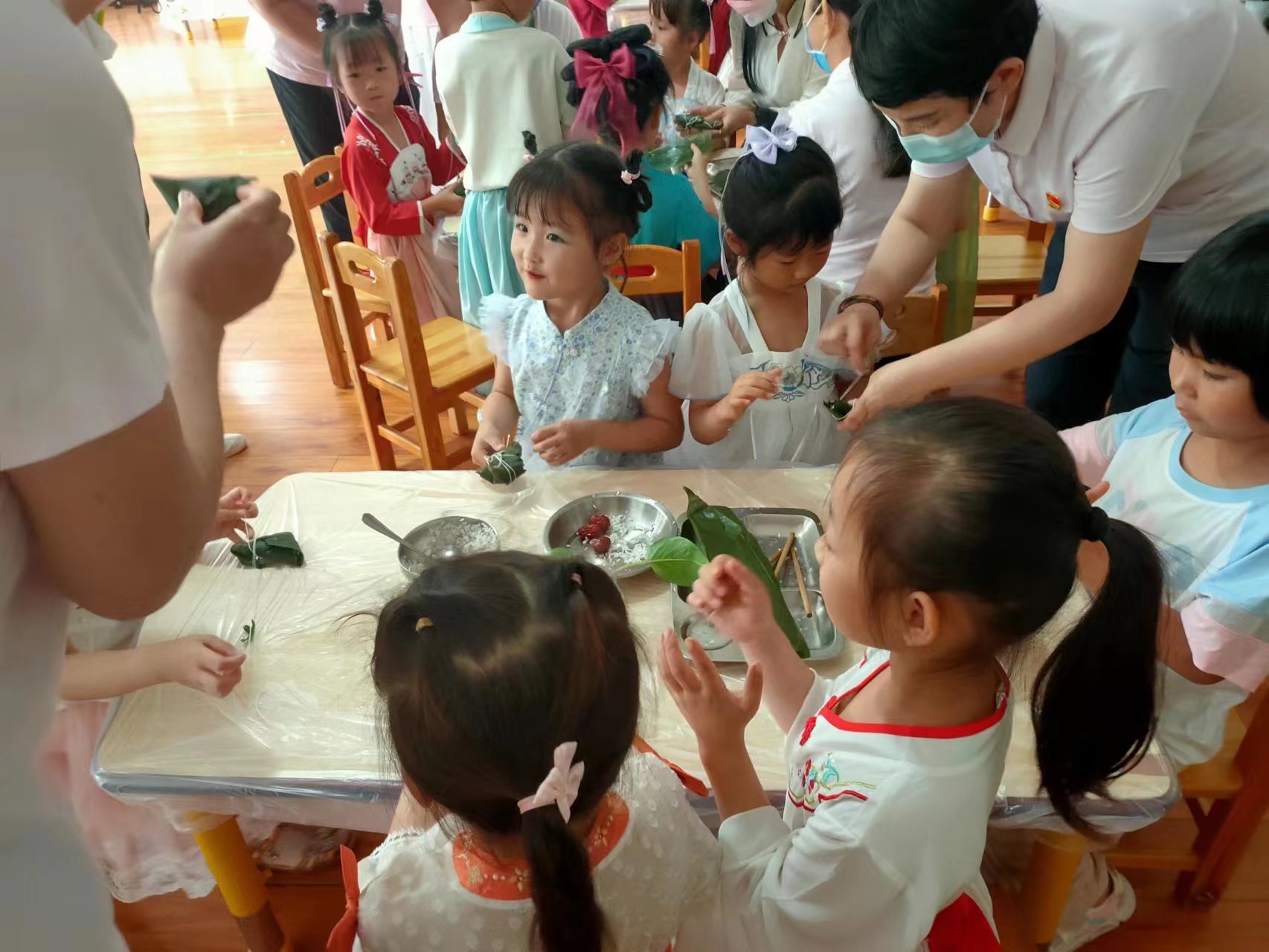 一年一度的“六一”兒童節(jié)和傳統(tǒng)節(jié)日端午節(jié)陸續(xù)走來, 5月31日,周口市文昌幼兒園開展端午情濃, 粽享“六一”活動(dòng)。小朋友們?cè)诶蠋煹膸ьI(lǐng)下,了解端午節(jié)來歷、學(xué)包粽子、齊唱《端午兒歌》,孩子們?cè)诒M享節(jié)日快樂的同時(shí),又了解了傳統(tǒng)節(jié)日文化。