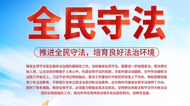 推進全民守法是全面依法治國的基礎(chǔ)性工作。當(dāng)前推進全民守法,需要進一步加強普法,把法律交給人民,讓法治信仰根植于人民心中,形成全民守法的氛圍,才能共建法治國家。