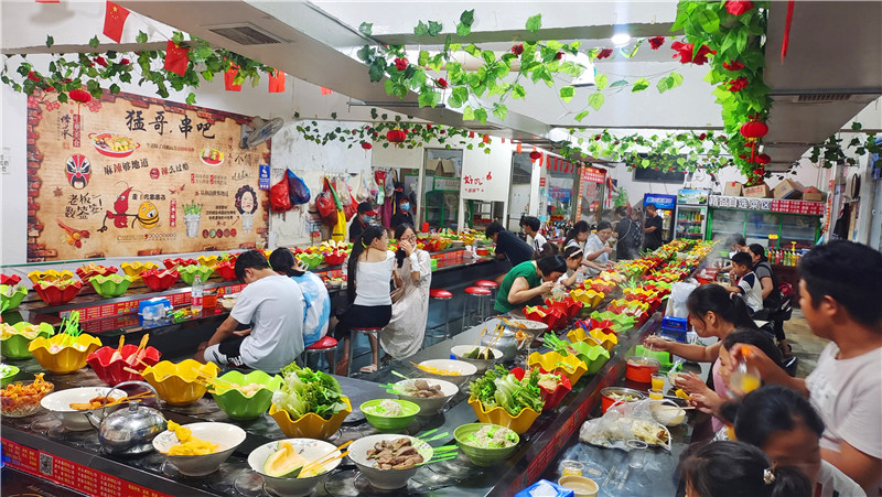 7月22日,周五。傍晚時(shí)分,一場(chǎng)暴雨如約而至,給燥熱的天氣帶來(lái)絲絲涼意。位于西華原縣委黨校院內(nèi)的串吧老板李猛從后廚走出,搬把凳子坐在店門(mén)口一邊涼快,一邊刷新著手機(jī)天氣預(yù)報(bào)。他得根據(jù)天氣情況估摸一下當(dāng)晚的客流量,以備食材。