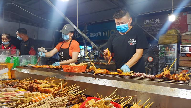 采訪中,記者還了解到,在原縣委黨校地?cái)傄故邪l(fā)展壯大的過(guò)程中,西華縣商務(wù)局、城管局、市場(chǎng)監(jiān)管局等部門(mén)牽頭引導(dǎo)商戶(hù)在西華縣高鐵站、上億美食廣場(chǎng)和西華縣南廣場(chǎng)設(shè)置地?cái)傄故校M(jìn)行規(guī)范管理,繁榮西華“夜經(jīng)濟(jì)”,共設(shè)置190余家攤位,日均消費(fèi)35萬(wàn)元左右。①5