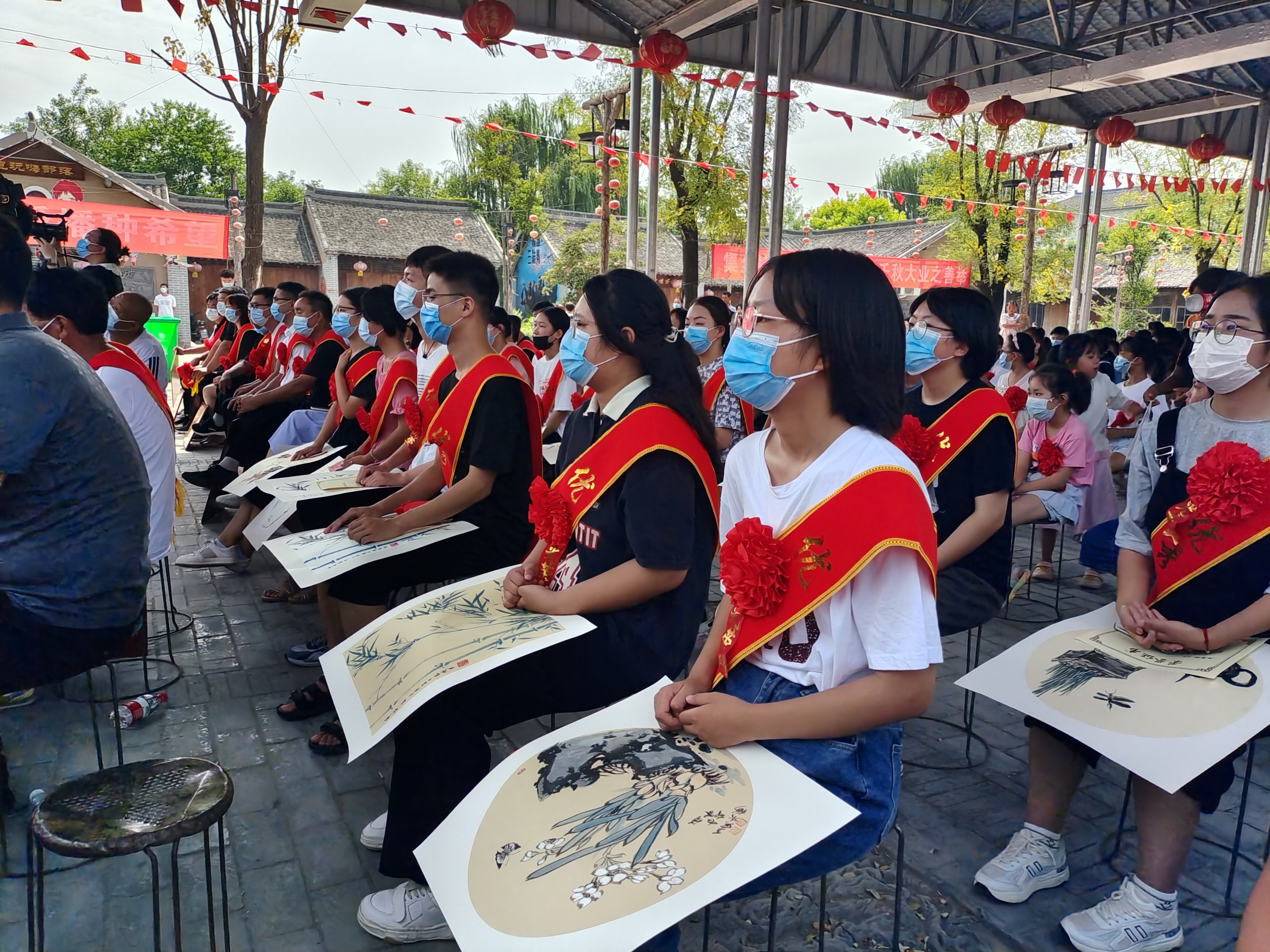 圖片說明:8月20日上午,太康縣老冢鎮(zhèn)2022年“山果”助學(xué)行動暨慶祝第38個教師節(jié)表彰大會在老冢鎮(zhèn)劉寨印象舉行,對9個尊師重教先進(jìn)行政村、8個教育工作先進(jìn)單位、63名優(yōu)秀教師、100名優(yōu)秀中小學(xué)生、1名2022年考入北京大學(xué)的研究生,及17名被雙一流高校錄取的大一新生進(jìn)行了表彰,共發(fā)放獎學(xué)獎教資金10.36萬元,詠絮書畫院向獲獎學(xué)生贈送了書畫作品。會前,與會人員共同觀看了文藝匯演和《美麗鄉(xiāng)村看老?!芳o(jì)錄短片。