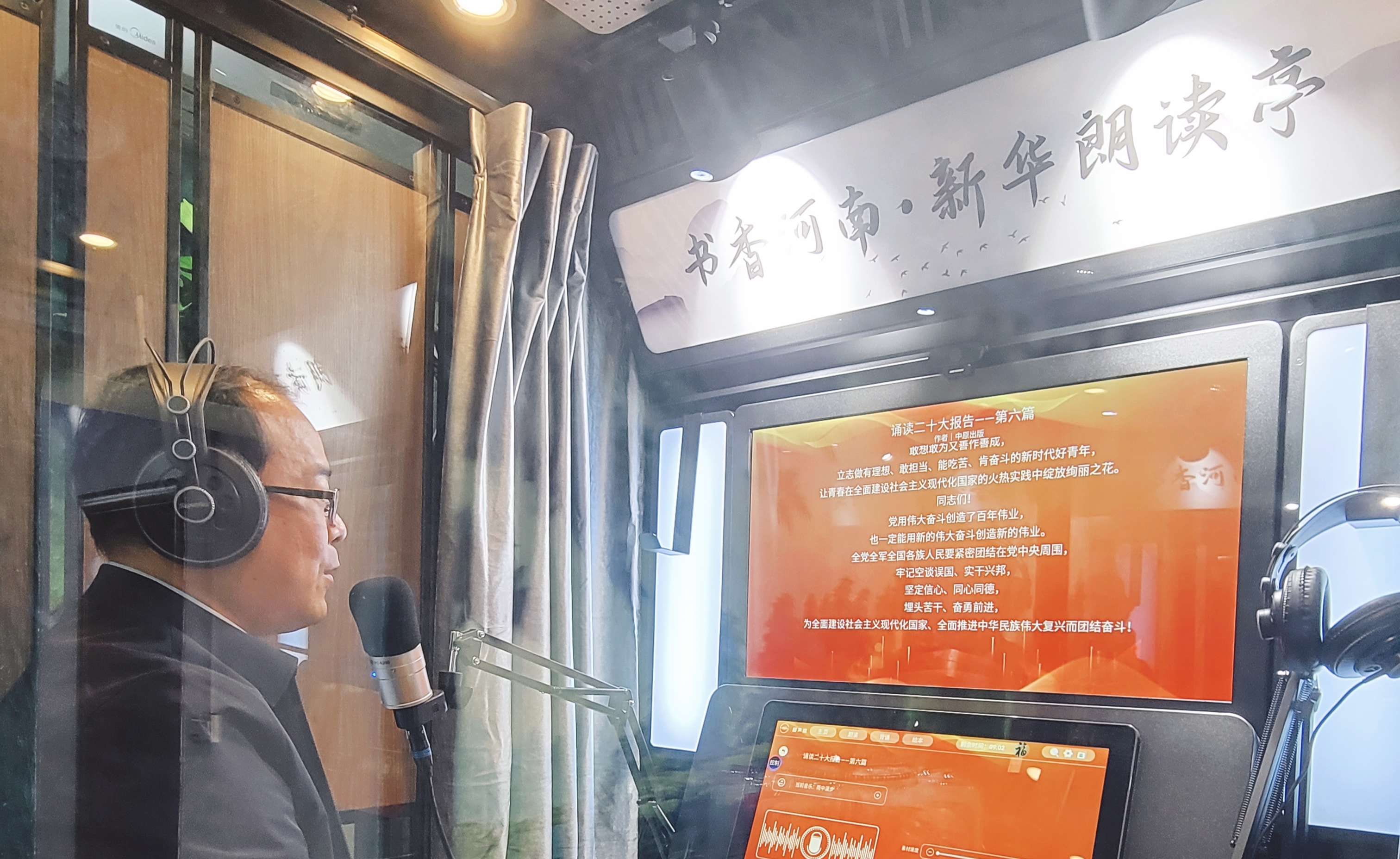 “堅(jiān)持黨的全面領(lǐng)導(dǎo)是堅(jiān)持和發(fā)展中國(guó)特色社會(huì)主義的必由之路……”11月3日,在位于項(xiàng)城市商城路與西大街交叉口的新華書(shū)店誦讀亭內(nèi),誦讀愛(ài)好者年秋燕正在選讀黨的二十大報(bào)告原文,其深情且鏗鏘有力的誦讀聲令人如癡如醉。