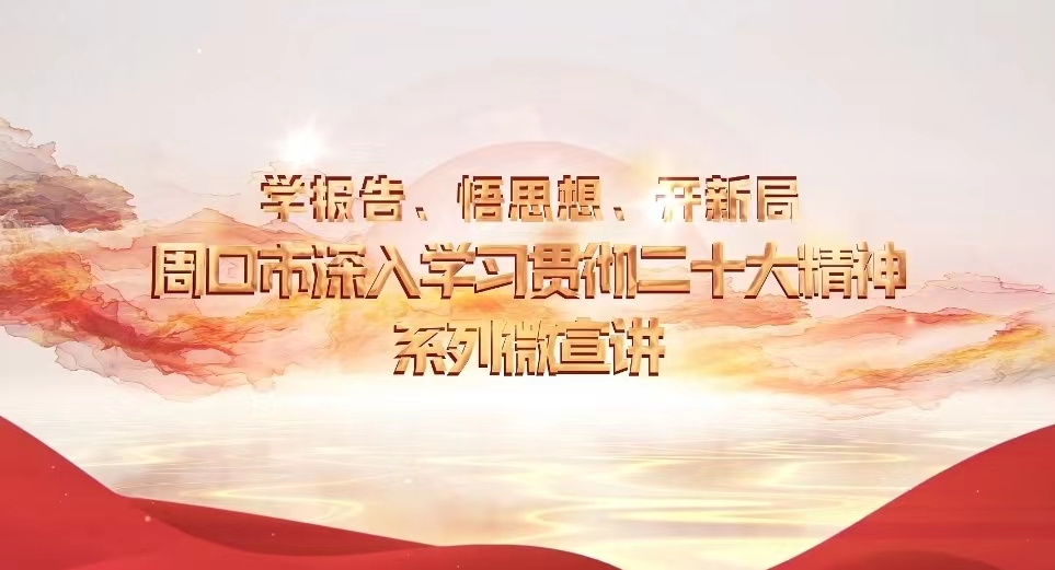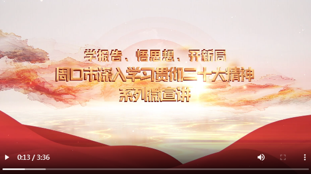 為深入學(xué)習(xí)貫徹黨的二十大精神,中共周口市委宣傳部、中共周口市委黨校和周口報業(yè)傳媒集團(tuán)共同制作“學(xué)報告 悟思想 新開局”系列宣講微視頻,將分專題陸續(xù)推出。