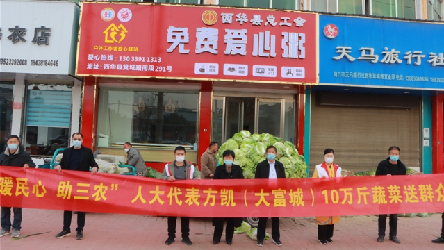 • “中國(guó)好人”、周口市人大代表方凱幫助黃橋鄉(xiāng)菜農(nóng)解決蔬菜滯銷難題,并通過(guò)西華縣紅十字會(huì)向這些單位捐贈(zèng)10萬(wàn)斤蔬菜,讓滯銷菜變“暖心菜”。方凱的這一舉動(dòng),受到群眾的稱贊。