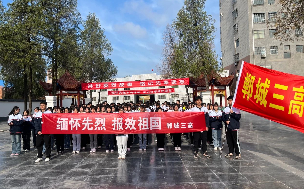 當(dāng)日上午,鄲城縣第三高級中學(xué)為悼念革命烈士,緬懷先烈的豐功偉績,教育學(xué)生弘揚(yáng)民族精神,加強(qiáng)愛國主義教育,組織師生到鄲城縣烈士陵園開展“清明祭英烈 ”為主題的清明節(jié)祭掃活動。